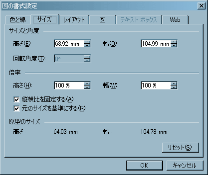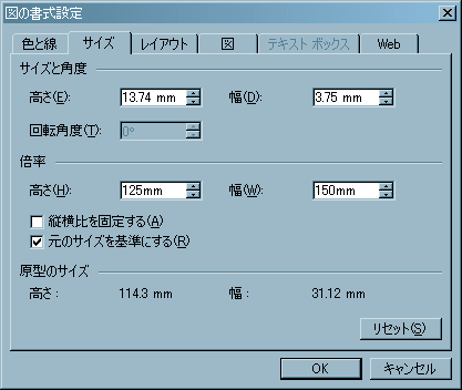 サイズのダイアログボックス
