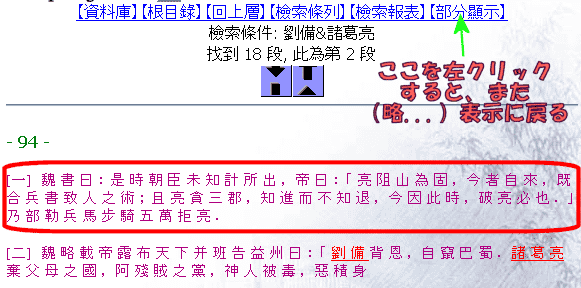- もし、(略 ...)表示ではなく全部を見たい場合には、画面の【全段顯示】を左クリックしてください。